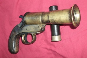 Original Flare Guns have had silicone molds created and then replicas have been cast in polyurethane resin, a form of hard plastic.This reproduces every detail of the original including arsenal marks etc. Available in unpainted grey resin( you paint) or painted by myself ready for display. Note – There are NO moving parts